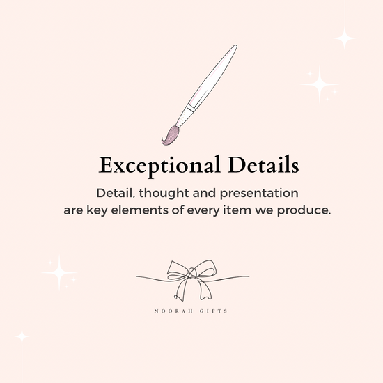 Here at Noorah Gifts, detail, thought and presentation are key elements of every item we produce.