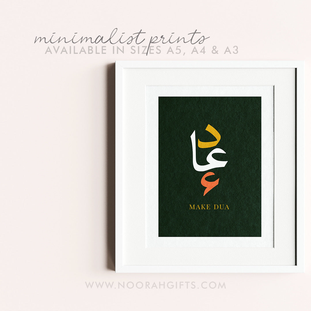 Transform your space with our vibrant minimalist prints. A reminder to make dua (supplication) is always needed.